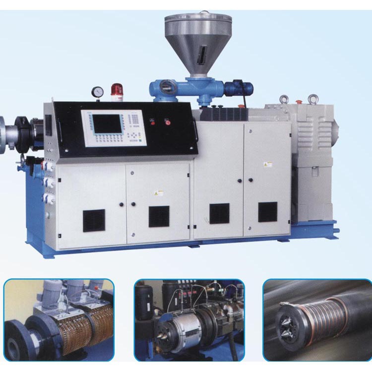 PVC線槽線管擠出生產線由KBL65/132錐形雙螺桿擠出機,模具,定型臺,雙牽引雙切割機,翻料架組成。產品材質是PVC,最佳生產管徑范圍為Φ16-Φ40mm。生產產量大,操作簡單方便,自動化程度高,遇故障自動警報,維護簡捷,使用壽命長。